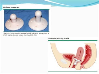 O documento discute aspectos atuais do tratamento do prolapso genital, definindo o termo, descrevendo a fisiopatologia, epidemiologia, fatores de risco, sintomas, métodos de tratamento conservador e cirúrgico, incluindo opções como enxertos e telas. O resumo fornece as principais informações sobre a definição, epidemiologia e opções de tratamento do prolapso genital.