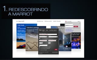 Pessoas visitam em média 23 websites antes de uma viagem de férias. 47% das reservas são de última hora, 63% são membros do programa de fidelidade Marriott Rewards e 65% são viagens de lazer. As pessoas também usam sites como o Google Flight Search e o Hipmunk para planejar viagens.