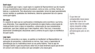1) O documento descreve a Tríade Semiótica de Pierce, que analisa os signos em termos de representamen, objeto e interpretante. 2) O representamen é o aspecto material e sintático do signo, o objeto é aquilo que o signo se refere, e o interpretante são as possibilidades interpretativas geradas na mente pelo signo. 3) A tríade categoriza os signos em quali-signo, sin-signo e legi-signo de acordo com suas relações com o representamen, objeto e interpretante.