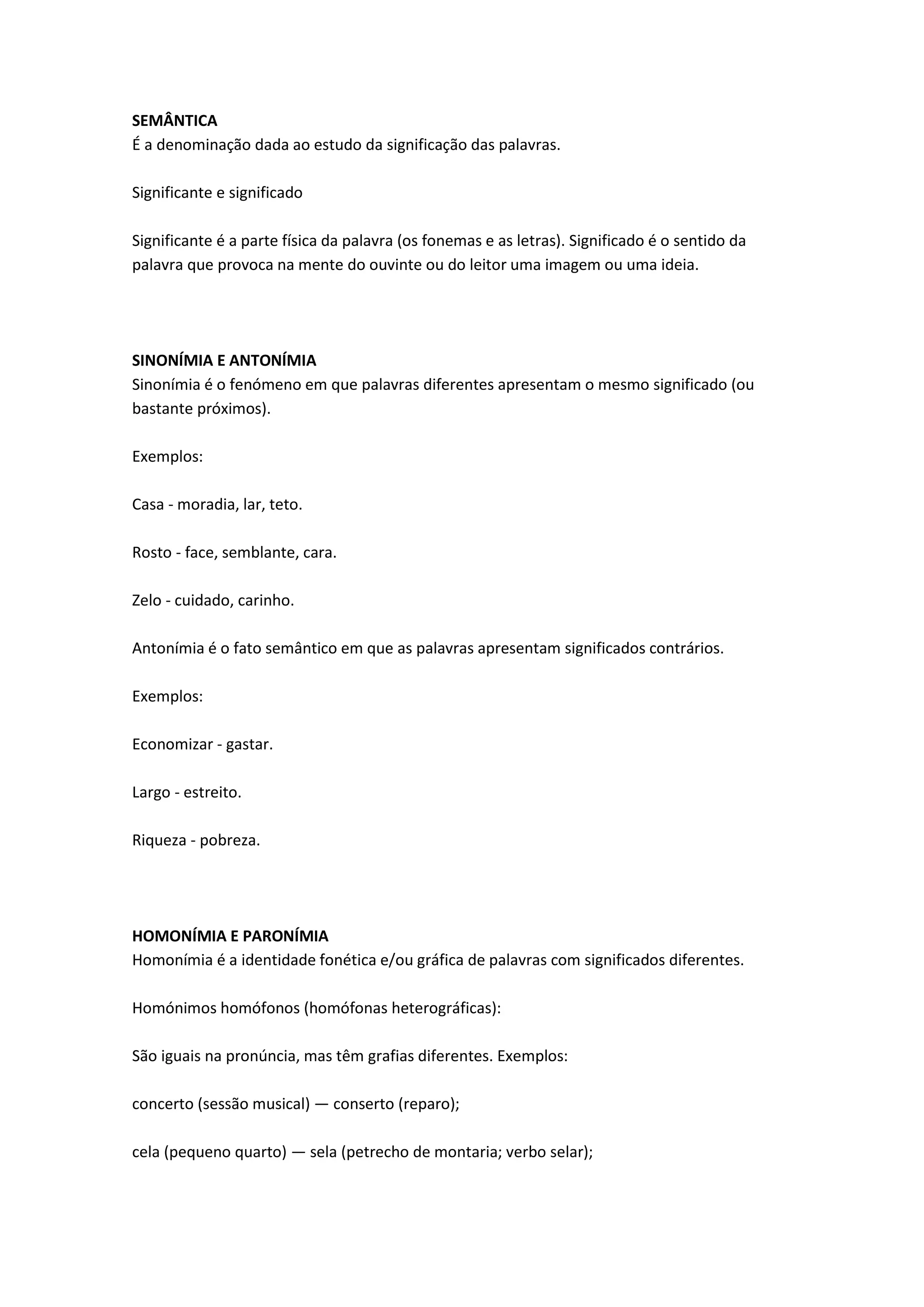 O documento discute vários conceitos da semântica, incluindo significante e significado, sinonímia e antonímia, homonímia e paronímia, hiperônimos e hipônimos. Explica que a semântica estuda o significado das palavras e que as relações semânticas entre palavras são importantes para a construção de textos.