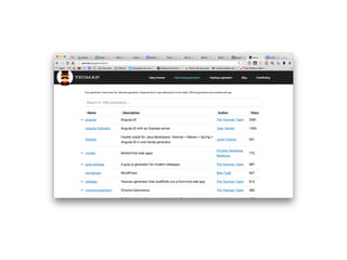 O documento discute as principais tecnologias front-end como HTML5, CSS3 e JavaScript, e como ferramentas como Grunt, Gulp, Bower e Yeoman podem ser usadas para automatizar e otimizar o desenvolvimento front-end. Também recomenda o uso do Node.js para ajudar a criar estruturas de projetos front-end de forma rápida e eficiente.