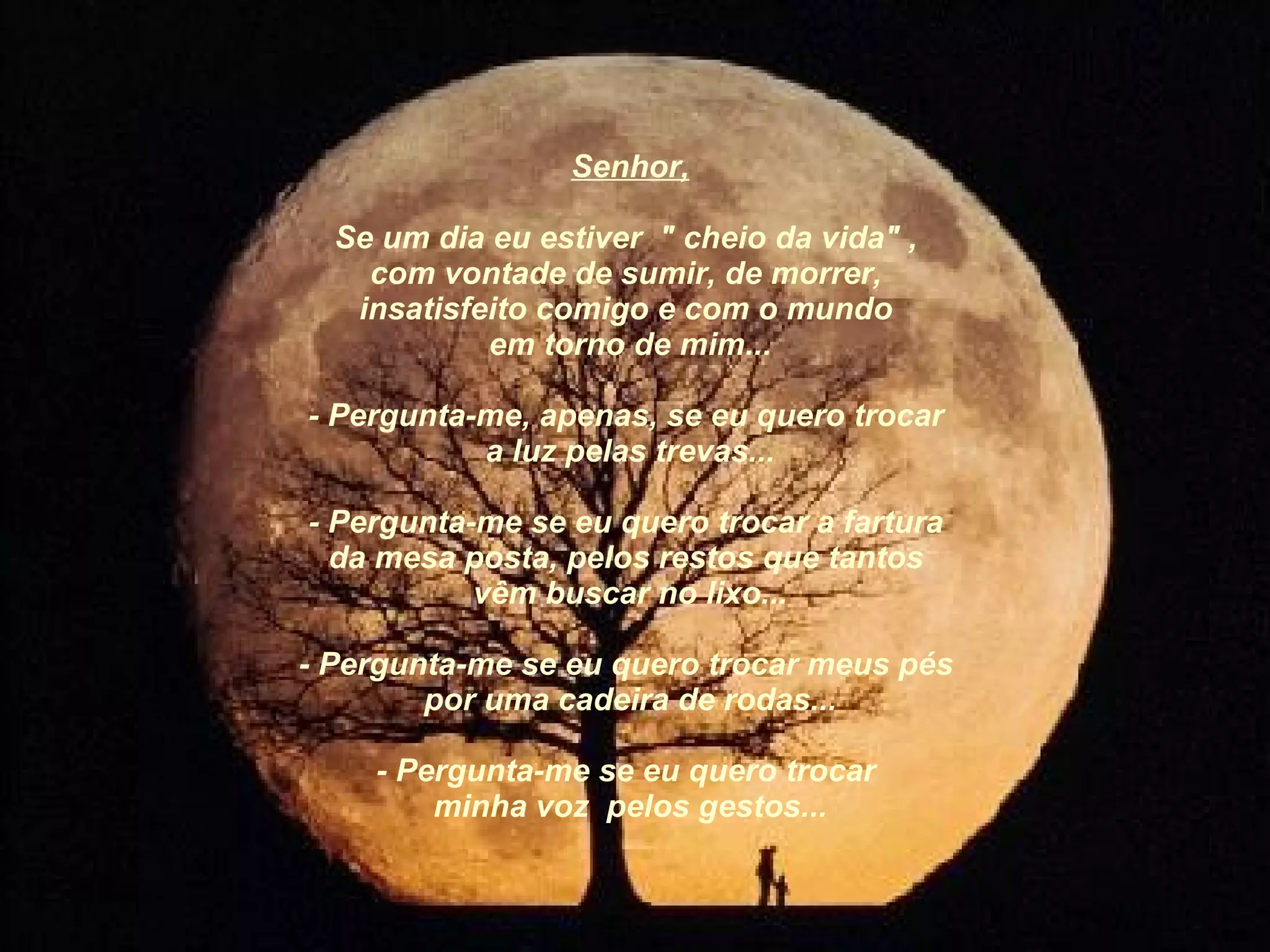 O documento pede que, se a pessoa estiver insatisfeita com a vida, que pense em como poderia estar pior, trocando suas bênçãos por situações de pessoas mais necessitadas - como cegueira, cadeira de rodas, doenças ou pobreza - para ser grato pelas coisas que tem.