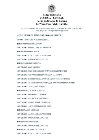 1) O documento descreve uma ação penal contra 10 réus por lavagem de dinheiro e pertinência a grupo criminoso organizado relacionados a desvios na construção da Refinaria Abreu e Lima.