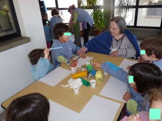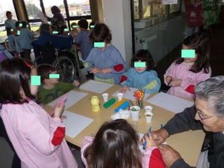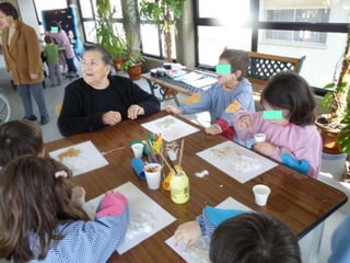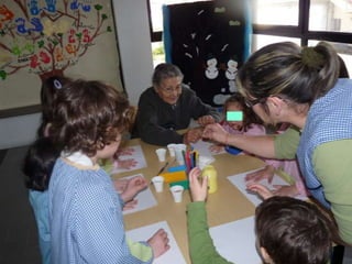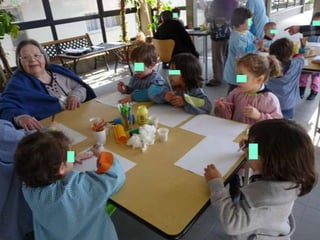 O documento discute a importância da interação entre idosos e crianças, destacando como o toque pode promover laços sociais entre gerações diferentes.