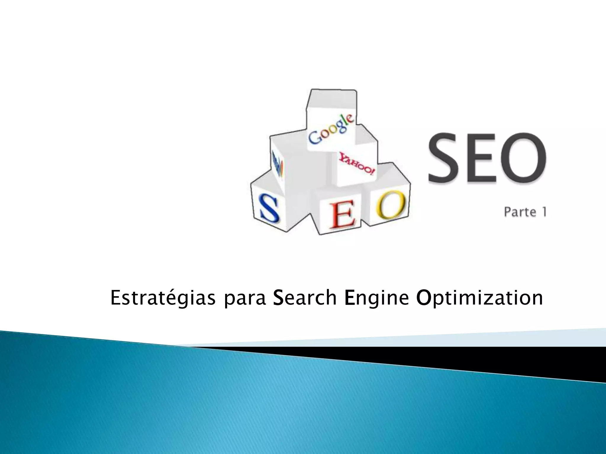 1) O documento discute estratégias para melhorar o posicionamento de sites nos mecanismos de busca, como o Google, Yahoo e Bing, através de otimização para mecanismos de busca (SEO).