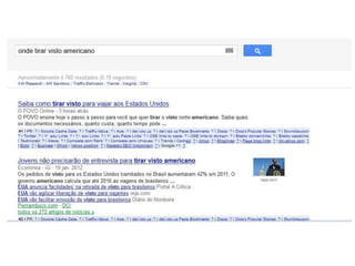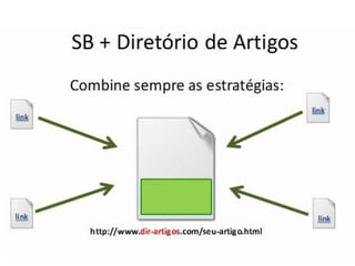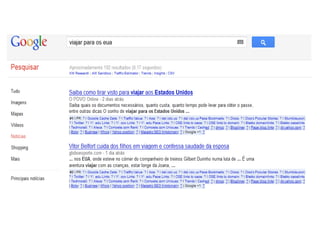 O documento discute conceitos e estratégias de marketing de busca (SEO), incluindo a importância das palavras-chave, otimização de conteúdo e links, e como os mecanismos de busca funcionam.