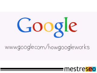 O documento apresenta dicas de SEO para desenvolvedores e designers, incluindo como o Google indexa sites, a importância de títulos, meta tags e marcação HTML correta, redirecionamentos, URLs amigáveis e o uso de ferramentas como Google Analytics e Sitemaps.