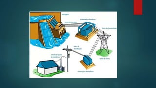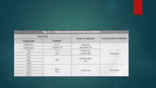 O documento descreve o Sistema Elétrico de Potência brasileiro, incluindo sua matriz energética em 2010 e 2019, com 60,8% de geração hidrelétrica. Detalha as etapas de geração, transmissão e distribuição de energia elétrica, os riscos envolvidos e as tensões associadas a cada fase.