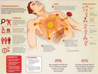 A sepse é uma doença causada pela invasão de bactérias na corrente sanguínea, provocando uma resposta inflamatória no organismo. A inflamação é causada pela resposta imune e não pelas bactérias. Sinais de sepse grave incluem hipotensão, disfunção renal e alterações na consciência.