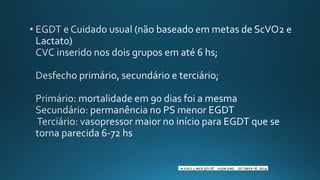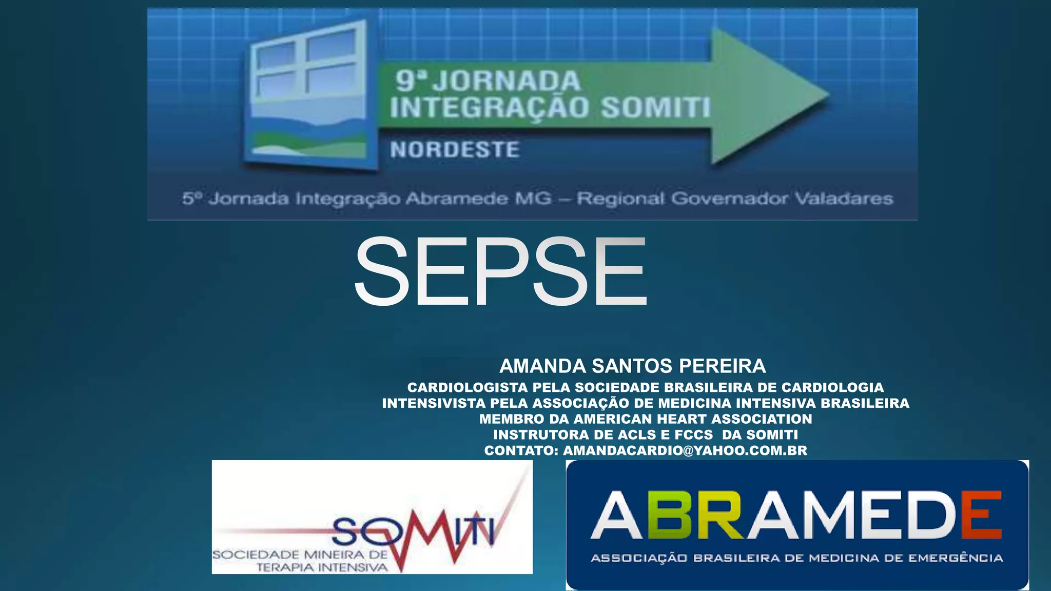 O documento apresenta o currículo de Amanda Santos Pereira, cardiologista e intensivista brasileira. Detalha definições e conceitos relacionados a sepse, choque séptico e disfunção orgânica ameaçadora à vida. Apresenta dados sobre a relevância da sepse no Brasil e no mundo, com taxas alarmantes de mortalidade. Discorre sobre diretrizes atuais para diagnóstico e tratamento precoce da sepse.