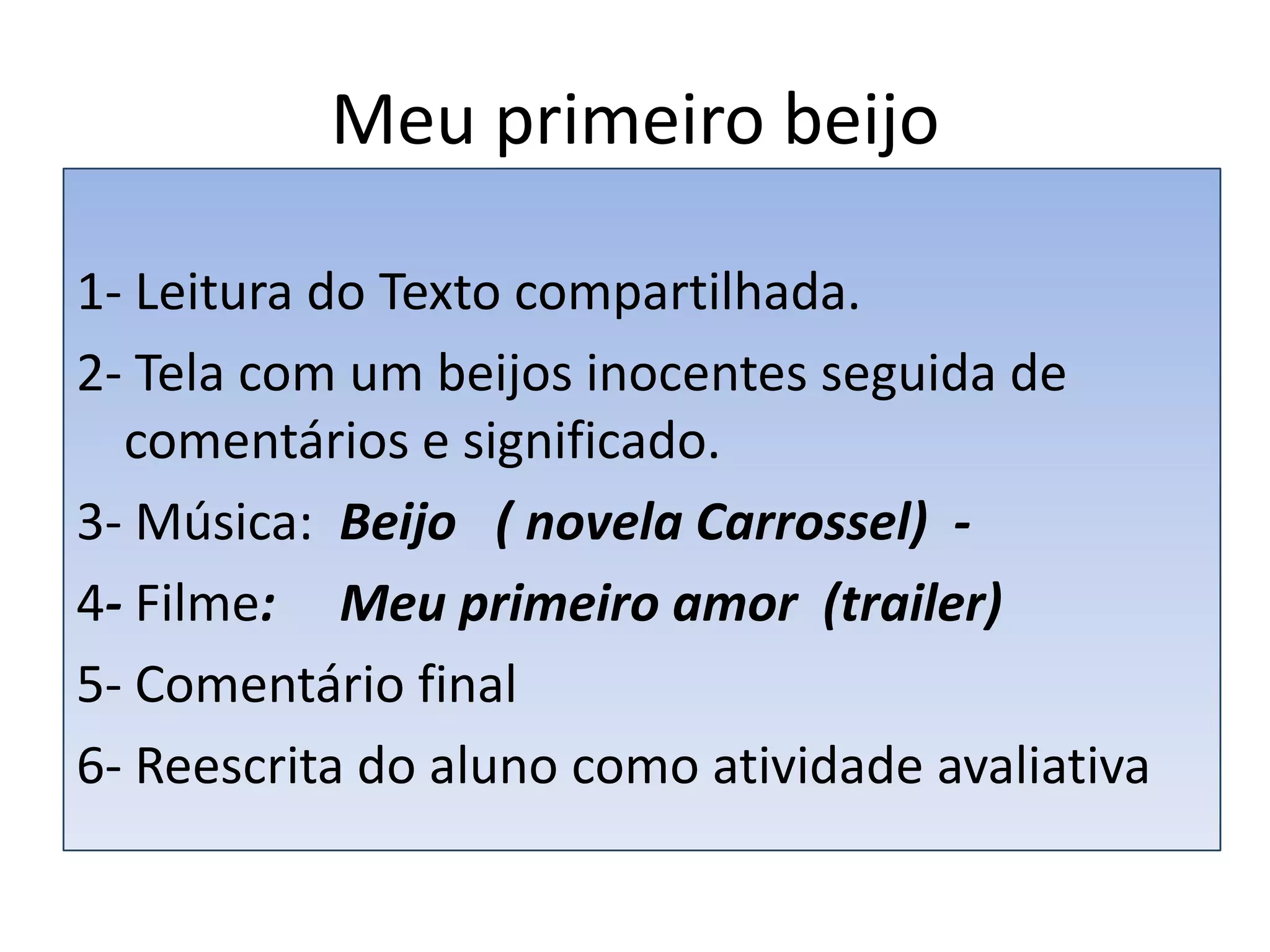 1) O documento discute a história do beijo, desde os primeiros registros em templos na Índia há 2500 a.C. até práticas em diferentes culturas ao longo dos séculos.