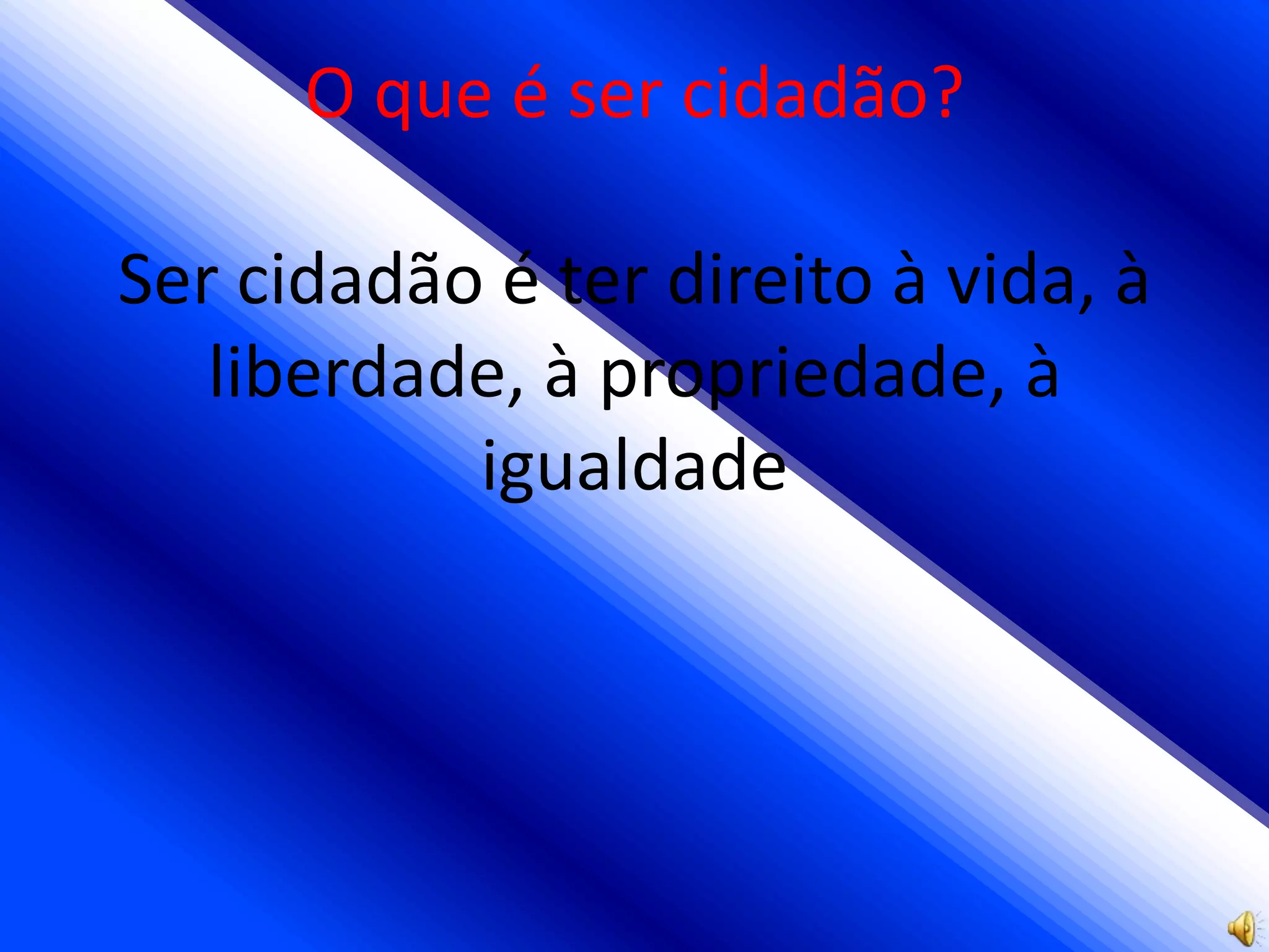 Ser cidadão significa ter direitos como educação, saúde, ir à escola e torcer pelo time que quiser, além de deveres como respeitar os outros, cumprir as leis de trânsito, respeitar os mais velhos e trabalhar.