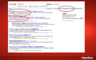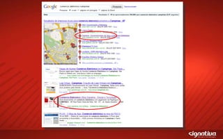 A Signativa é uma empresa de tecnologia com 5 anos de mercado e escritórios em várias cidades brasileiras. Ela oferece serviços como desenvolvimento de sites, hospedagem, e-mail corporativo e otimização para mecanismos de busca, com o objetivo de melhorar o posicionamento online de seus clientes. A proposta comercial inclui o desenvolvimento inicial do site e manutenção posterior.