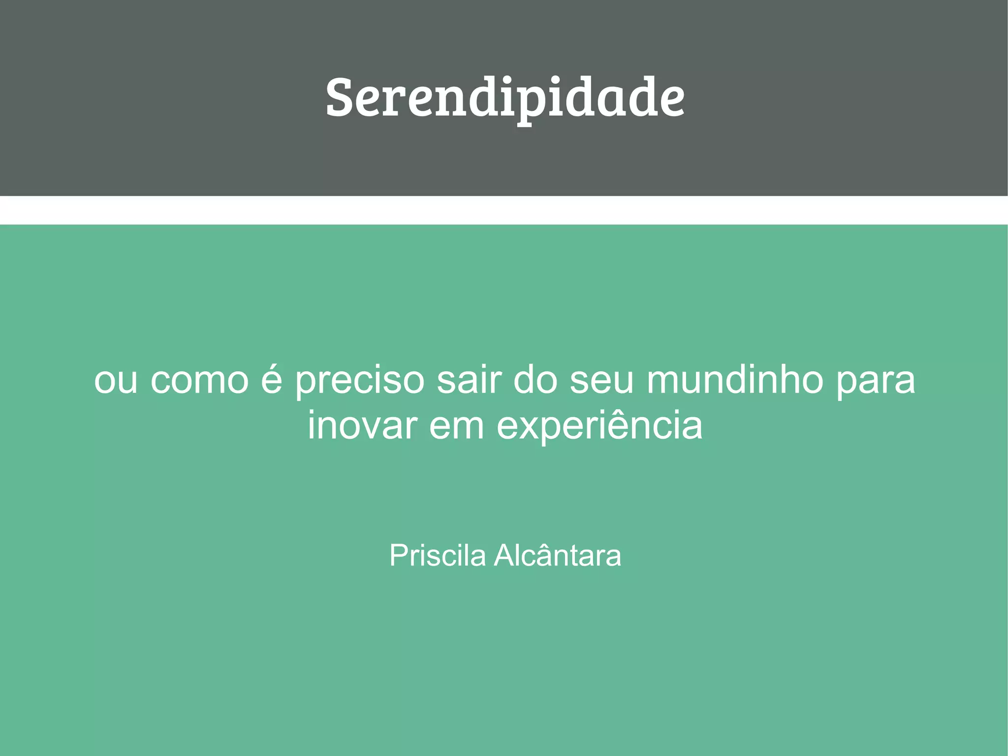 O documento discute o conceito de serendipidade, que é quando descobertas são feitas de forma casual e inesperada. Explica que a penicilina foi descoberta de forma serendipitosa e que inovação requer sair dos padrões usuais para ver coisas diferentes e possivelmente encontrar soluções inesperadas. A chave é estar aberto a novas ideias ao observar diversos contextos e ter muitas ideias para possivelmente gerar boas ideias.