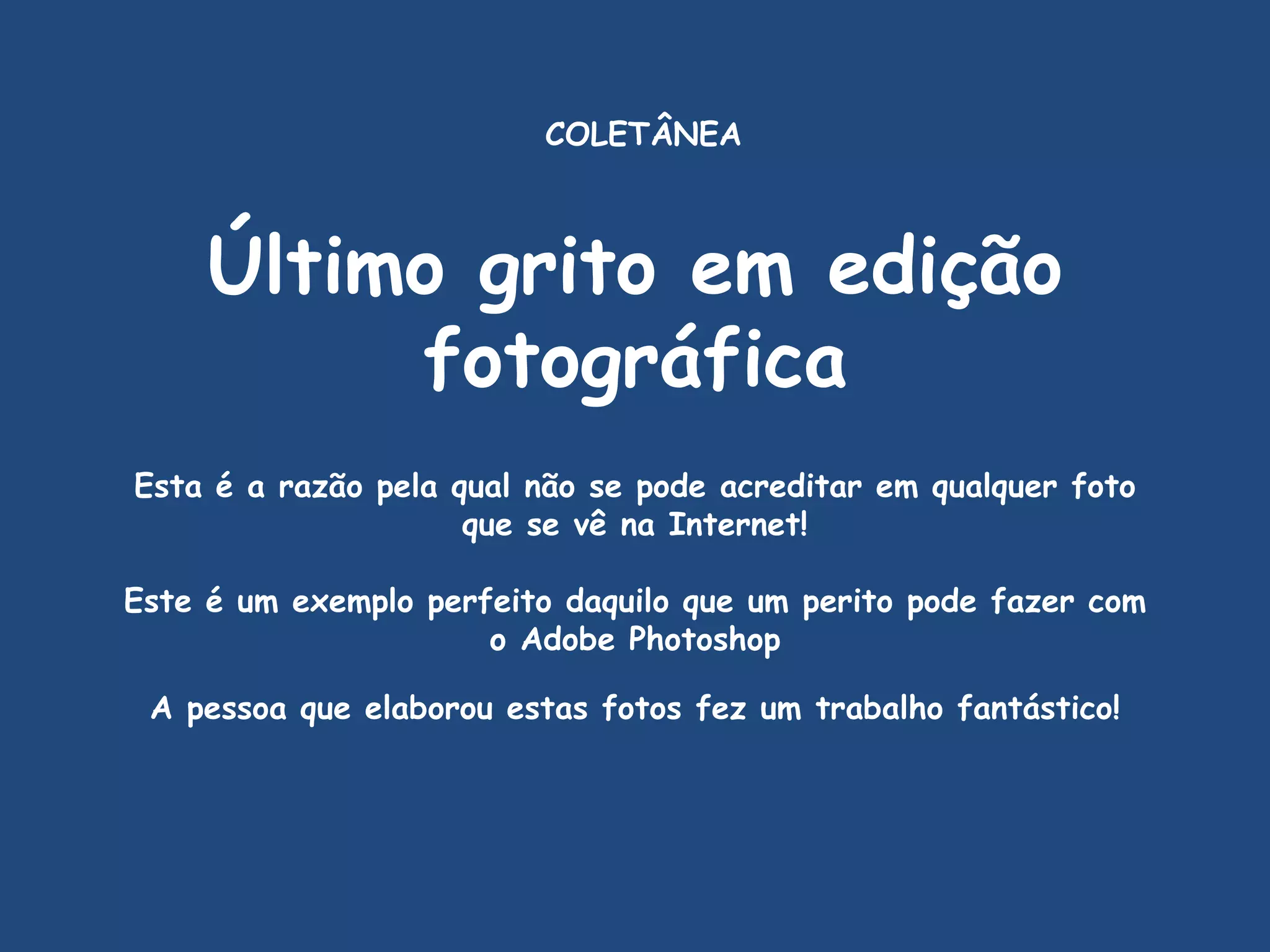Este documento discute como fotos na internet podem ser falsificadas usando programas como o Photoshop. Ele fornece um exemplo de edição fotográfica feita por um perito que ilustra como fotos podem ser manipuladas de forma convincente.
