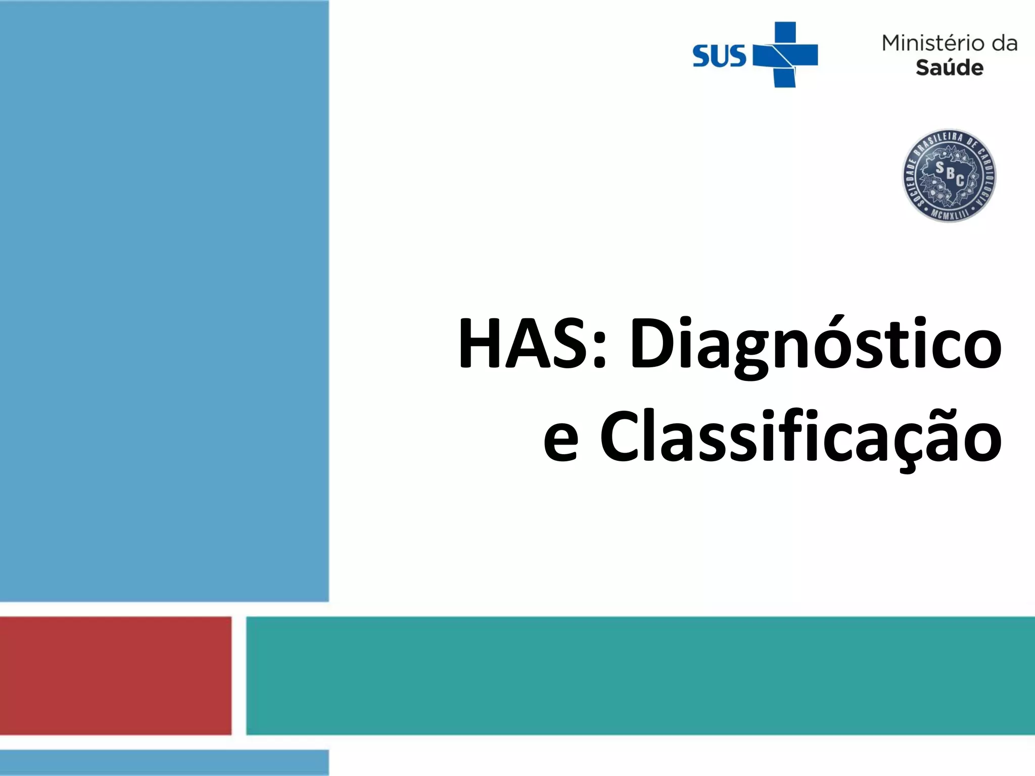 O documento fornece diretrizes sobre o diagnóstico e classificação da hipertensão arterial, incluindo procedimentos padrão para medição da pressão arterial, investigação clínico-laboratorial para avaliar lesões em órgãos-alvo e fatores de risco, e classificação da pressão arterial de acordo com valores de pressão sistólica e diastólica.