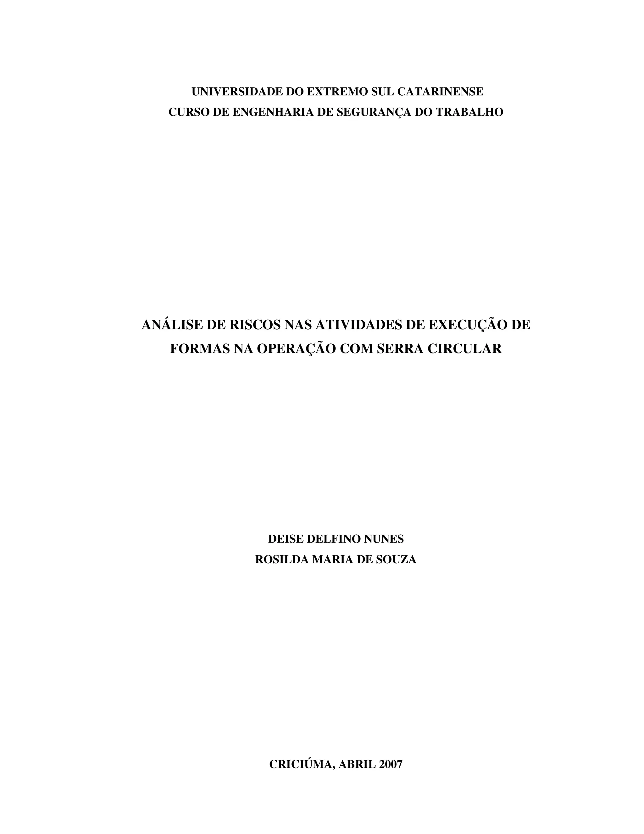 Este documento apresenta uma análise de riscos nas atividades de execução de formas na operação com serra circular em uma construção civil. Descreve o processo de execução de formas, os riscos associados à operação da serra circular e medidas preventivas. Utiliza técnicas de análise de riscos como What-if, checklist, Análise Preliminar de Riscos e Análise de Modos de Falha e Efeitos para identificar perigos e avaliar riscos.
