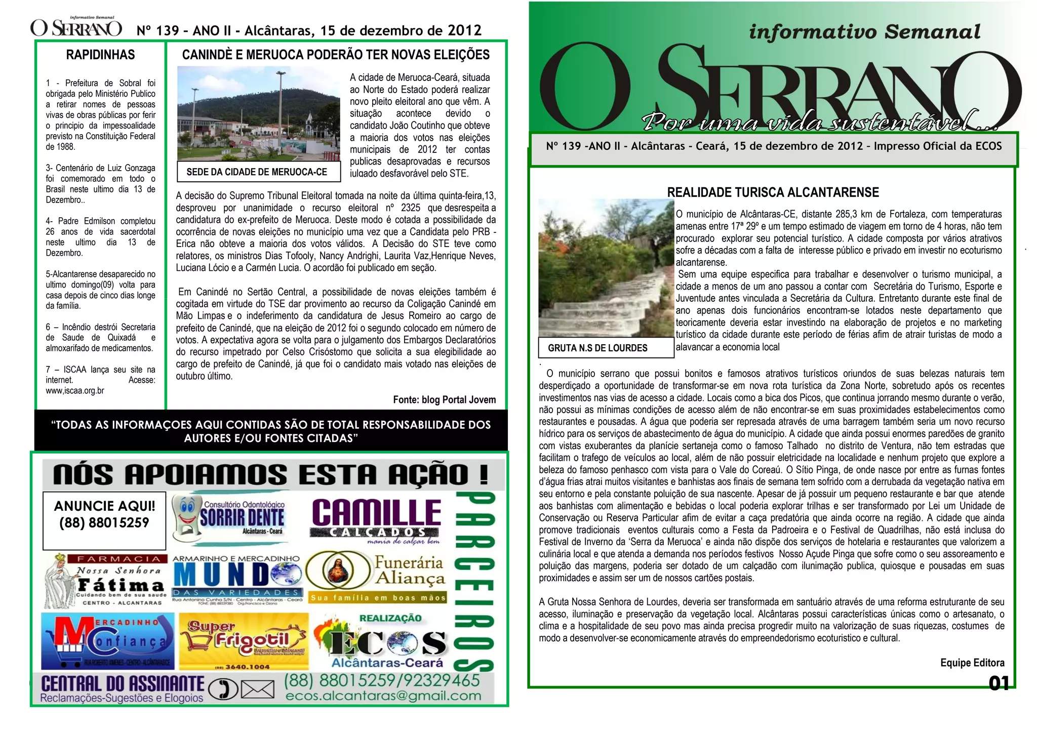 2) O potencial turístico não explorado de Alcântaras, como cachoeiras e grutas, e a falta de investimento no ecoturismo.