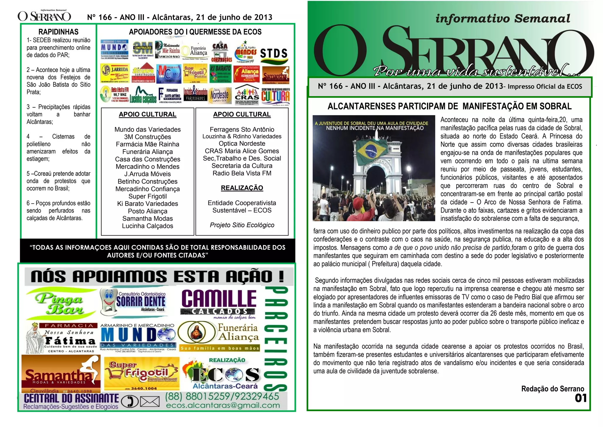 Manifestantes em Sobral protestaram contra gastos públicos excessivos e a falta de investimento em saúde, educação e segurança. Uma manifestação semelhante está planejada para ocorrer em 26 de junho em Sobral para cobrar respostas sobre transporte público e violência urbana.