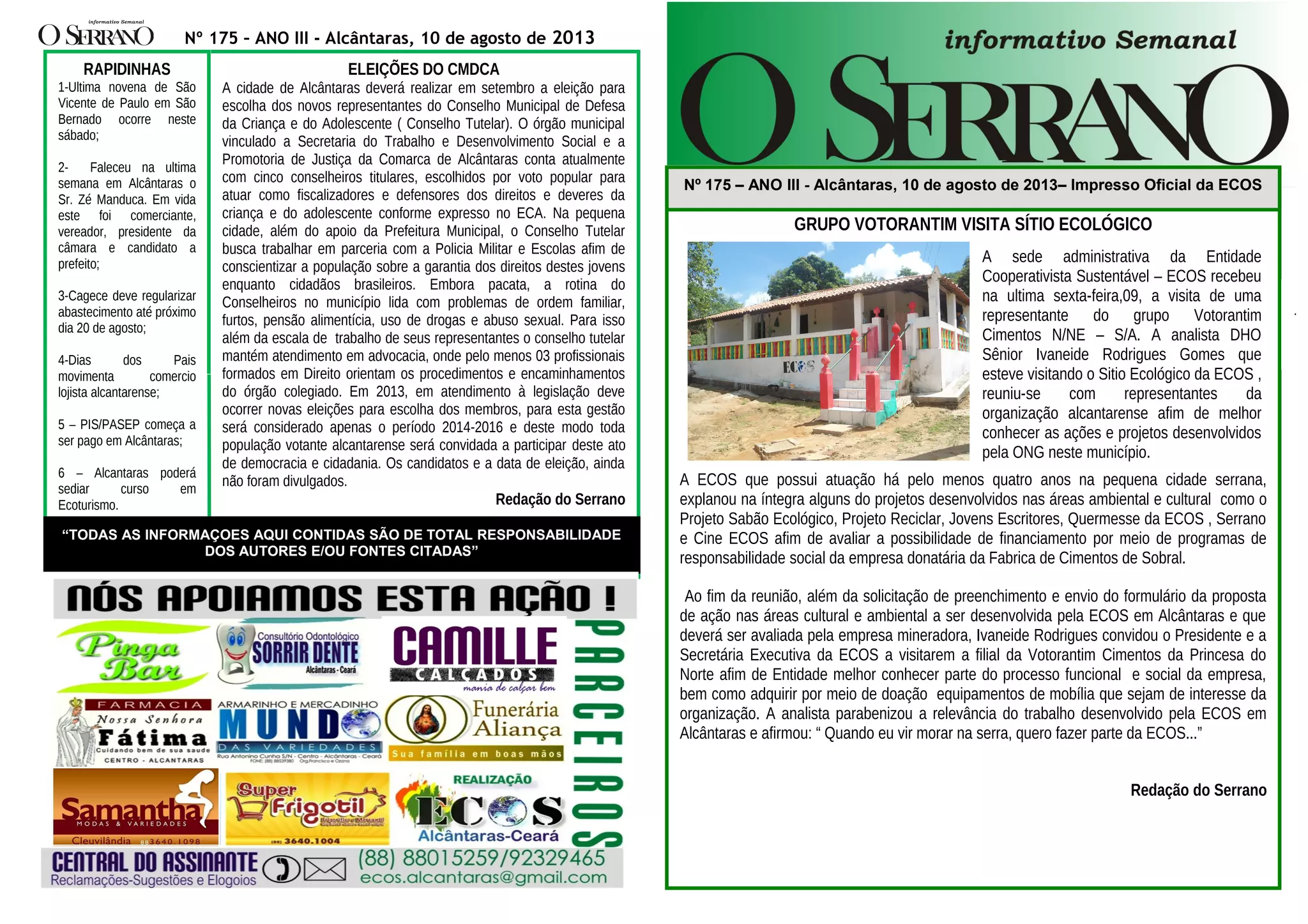 Nº 175 – ANO III - Alcântaras, 10 de agosto de 2013– Impresso Oficial da ECOS