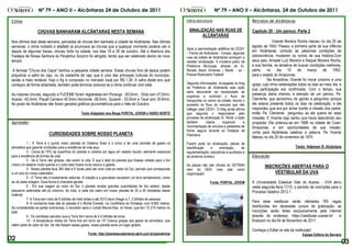 (1) Chuvas fortes atingiram a cidade de Alcântaras nesta semana, podendo prejudicar a safra de caju. (2) A prefeitura iniciou a sinalização de ruas principais para organizar o trânsito com o aumento de veículos. (3) O documento também apresenta a biografia de Vicente Moreira Rocha, um padre nascido em Alcântaras.