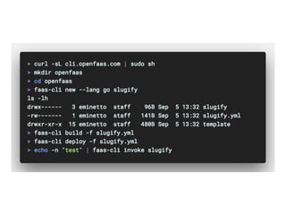O documento discute os benefícios de usar Go para funções serverless e frameworks para desenvolvimento serverless como Serverless Framework, AWS, Up e OpenFaas. Ele explica como configurar e implantar funções serverless em Go usando esses frameworks e discute quando cada um é mais adequado dependendo dos requisitos do projeto.