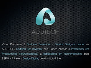 1. O documento discute os princípios e processos de design de serviços, incluindo mapear o negócio, entender os clientes, desenhar conceitos e prototipar ideias. 2. É destacado que serviços estão em todos os lugares e são criados constantemente, e que é importante entender as necessidades dos clientes por meio de personas e mapas de empatia. 3. As etapas do processo de design de serviços incluem mapear o negócio, entender clientes, desenhar conceitos, prototipar e implantar, com foco em melhor