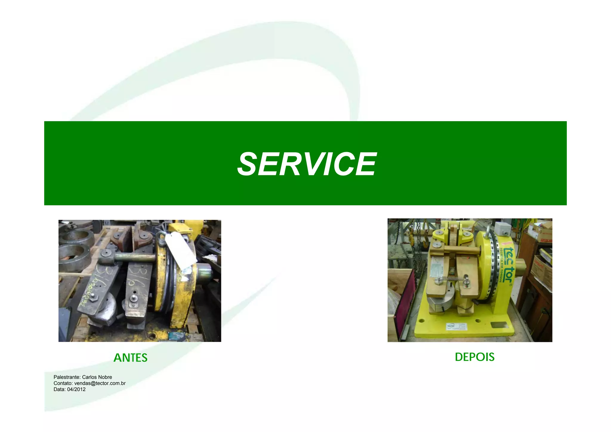 Este documento fornece um resumo dos serviços de manutenção oferecidos pela empresa Tec Tor, incluindo inspeção de equipamentos, contratos de manutenção preventiva e corretiva, reformas, análise de falhas, treinamentos e suporte técnico. A empresa possui mais de 30 anos de experiência e uma equipe especializada para garantir a qualidade e eficiência dos equipamentos ao longo do tempo.