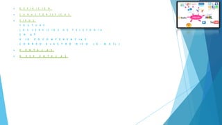 Este documento discute os serviços de internet, definindo-os como meios de entretenimento, informação e comunicação. Descreve vários tipos de serviços como YouTube, serviços de telefonia, chat, videoconferências e e-mail. Também discute as vantagens de recursos educacionais online e a oportunidade de comunicação global, mas reconhece riscos como violação de direitos autorais e perigos para crianças online.