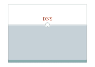 [1] O DNS é um sistema hierárquico e distribuído para mapear nomes de domínio em endereços IP, permitindo que usuários acessem sites sem saber seus endereços numéricos. [2] Ele foi desenvolvido na década de 1980 para substituir arquivos estáticos que não suportavam o crescimento da internet. [3] O DNS funciona por meio de uma arquitetura cliente-servidor com servidores primários, secundários e cache para agilizar consultas futuras.