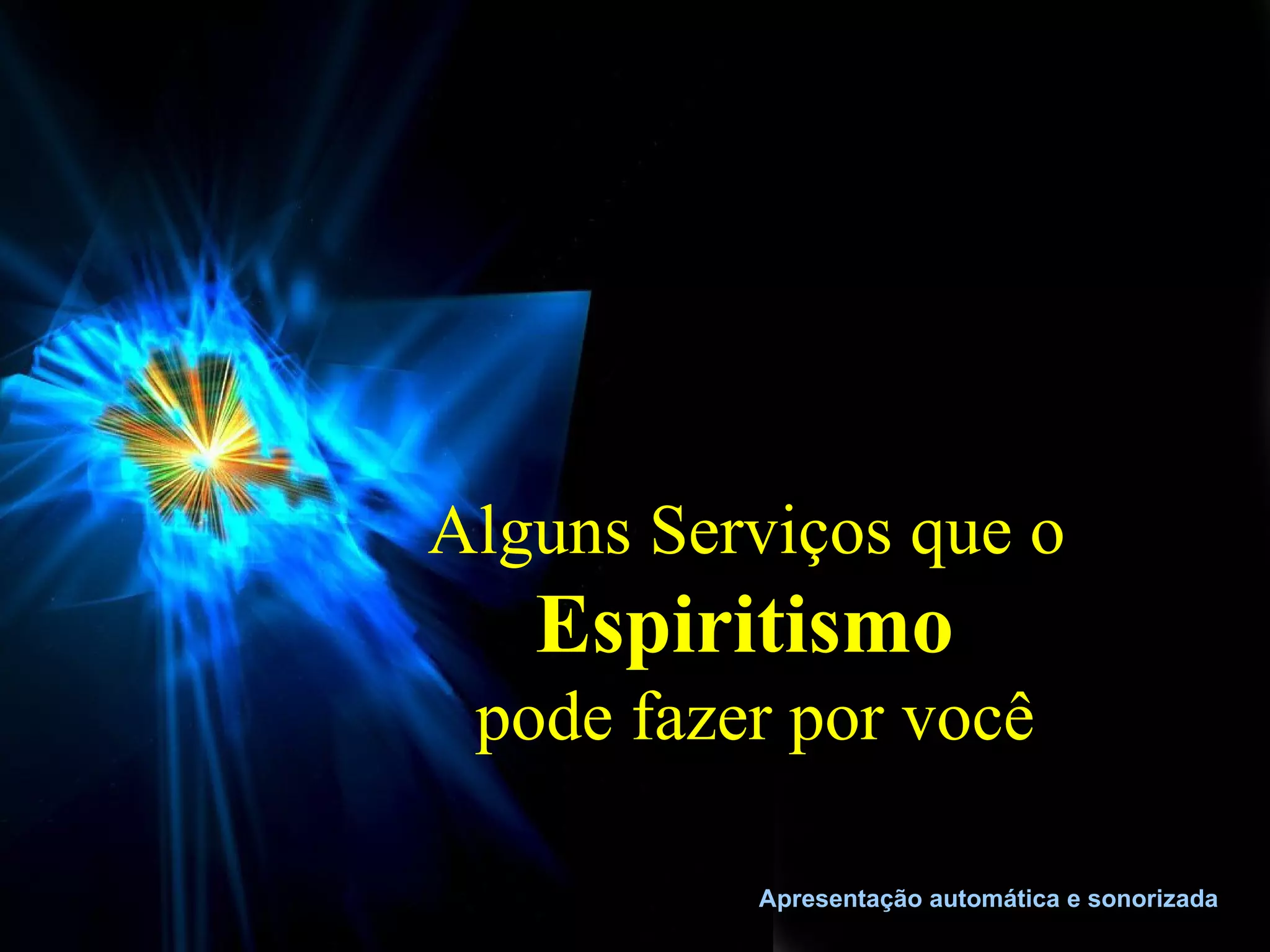 O documento lista diversos serviços que o Espiritismo pode oferecer, incluindo integrar as pessoas ao conhecimento de sua natureza eterna, revelar o princípio da reencarnação, e tranquilizar sobre a morte mostrando que ela não existe. Também pode fornecer conforto sobre entes queridos falecidos, esclarecer sobre obsessão, e ensinar a considerar adversários como instrutores.