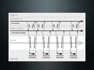 O documento discute como implementar push no servidor usando Servlets 3 e AsyncContext. Isso permite escalar aplicações para milhares de clientes usando poucas threads, ao liberar a thread quando o processamento é assíncrono. O autor fornece exemplos de código para armazenar clientes em fila e enviar mensagens para eles sem bloquear, melhorando a capacidade do servidor.