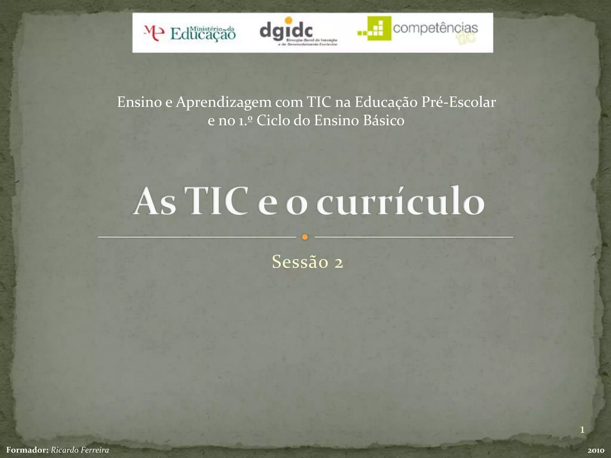 Este documento discute o uso de TIC (tecnologias da informação e comunicação) no currículo escolar do ensino básico em Portugal. Ele fornece objetivos para o uso de ferramentas digitais em sala de aula, exemplos de diferentes tipos de ferramentas, e questões a serem consideradas sobre como cada ferramenta pode contribuir para a aprendizagem.