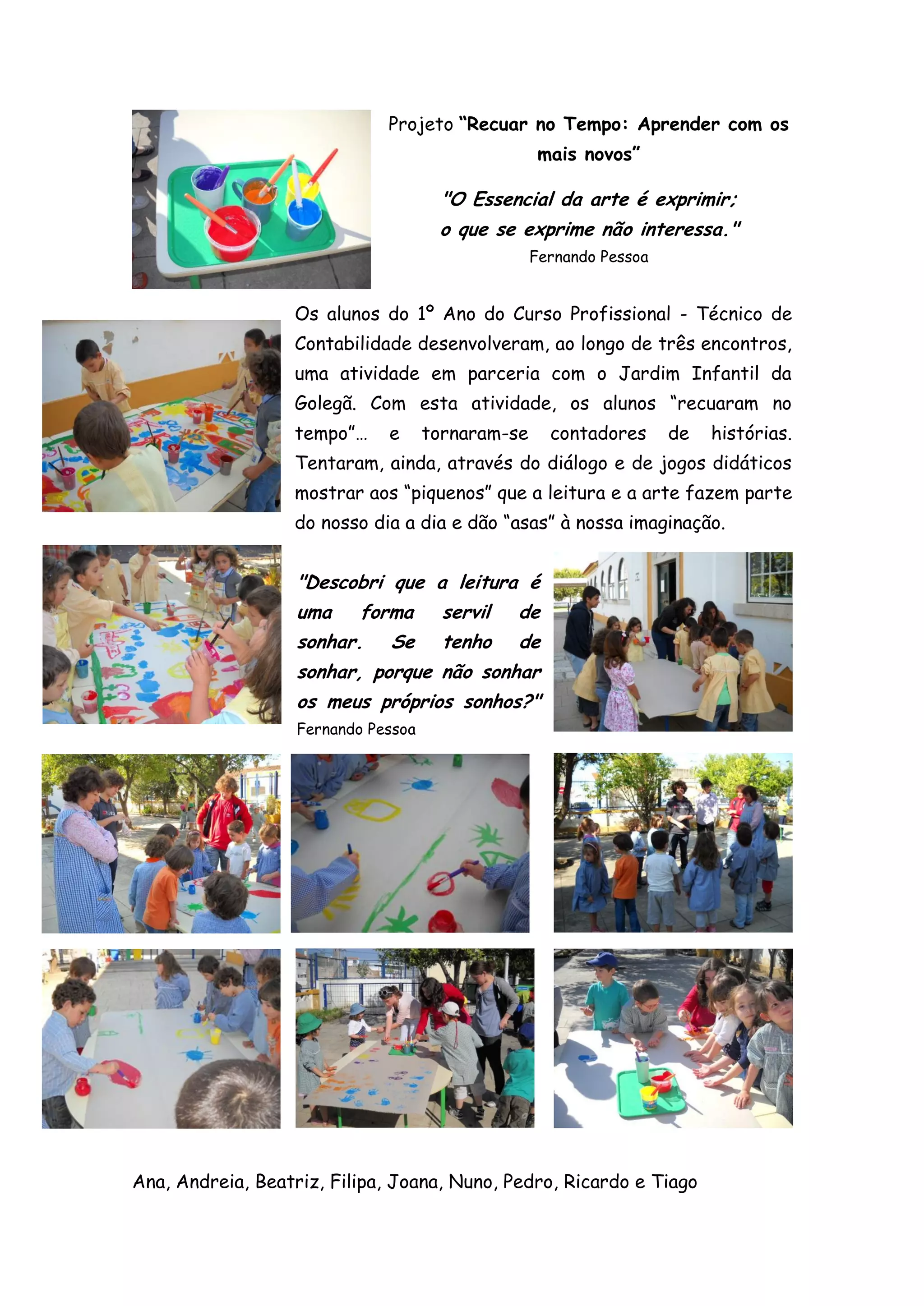 Os alunos do 1o ano do curso profissional de contabilidade desenvolveram uma atividade com crianças de jardim de infância onde contaram histórias e usaram jogos para mostrar que a leitura e a arte são parte do nosso dia a dia e estimulam a imaginação.