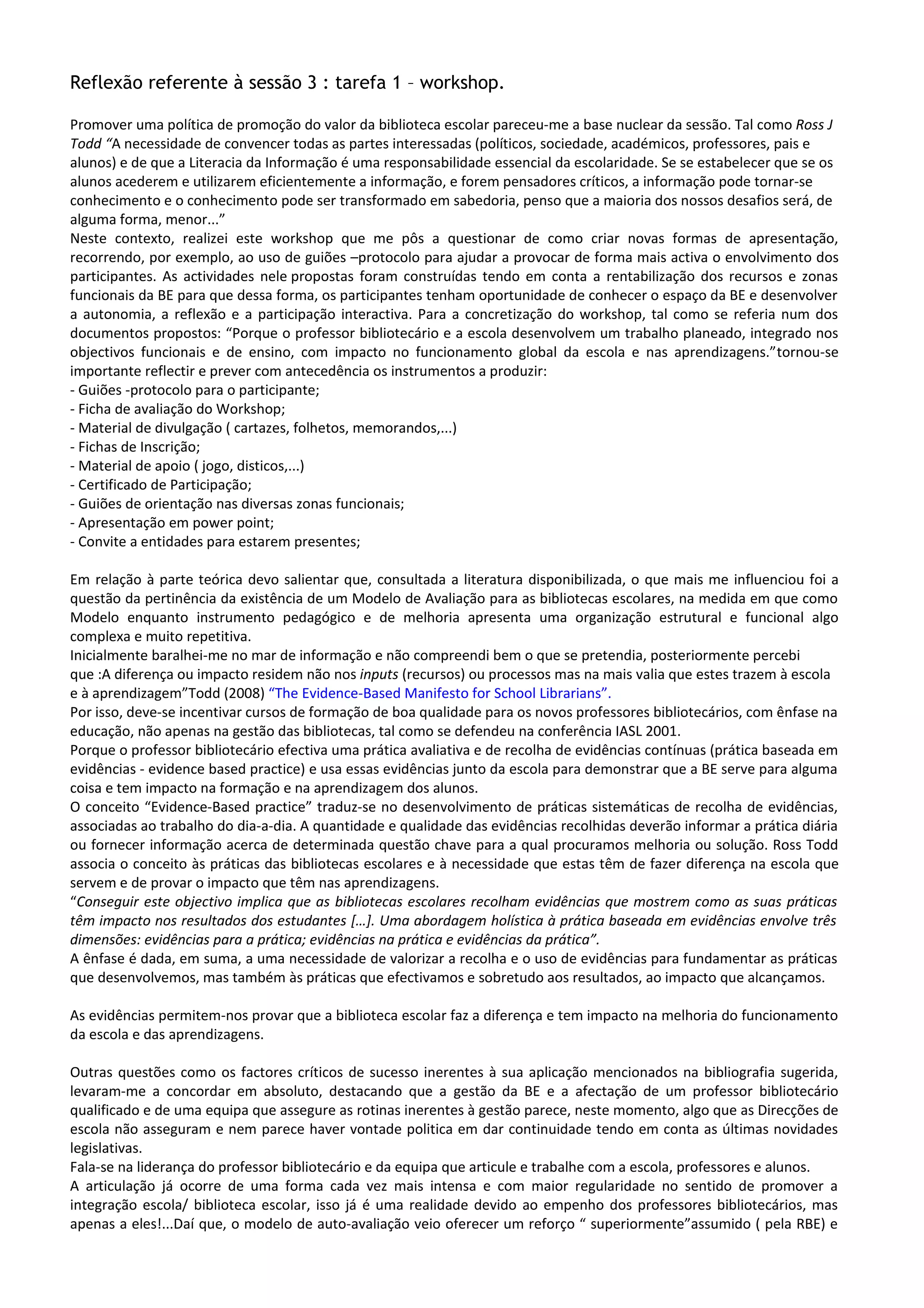 1) O documento discute a importância de promover o valor da biblioteca escolar e de convencer as partes interessadas sobre o papel da literacia da informação.