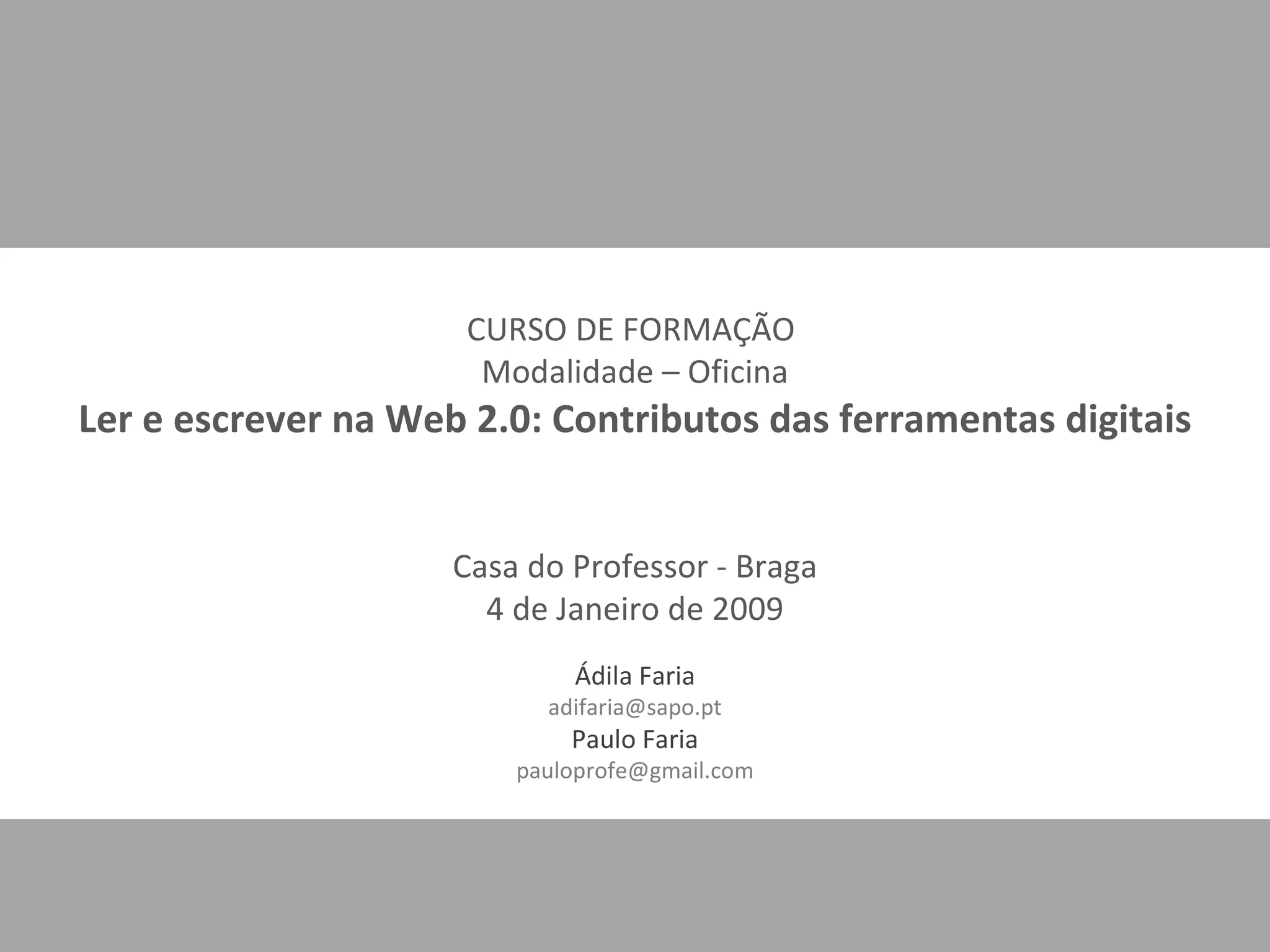 1) O documento discute ferramentas digitais para leitura e escrita na Web 2.0 como parte de um curso de formação.