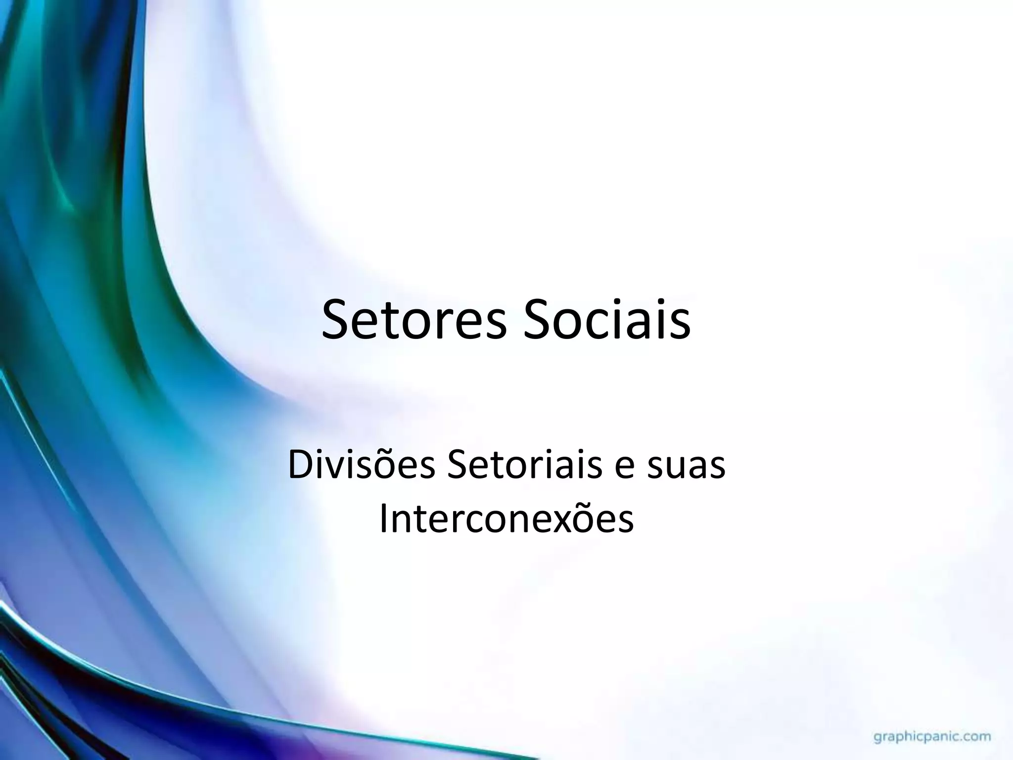 O documento discute os setores sociais e suas interconexões, com foco nos núcleos sociais como família, grupos e estado. Também aborda as quatro áreas que compõem os setores sociais: social, jurídico, cultural/religioso e econômico. Por fim, discute a análise setorial feita pelo IBGE.