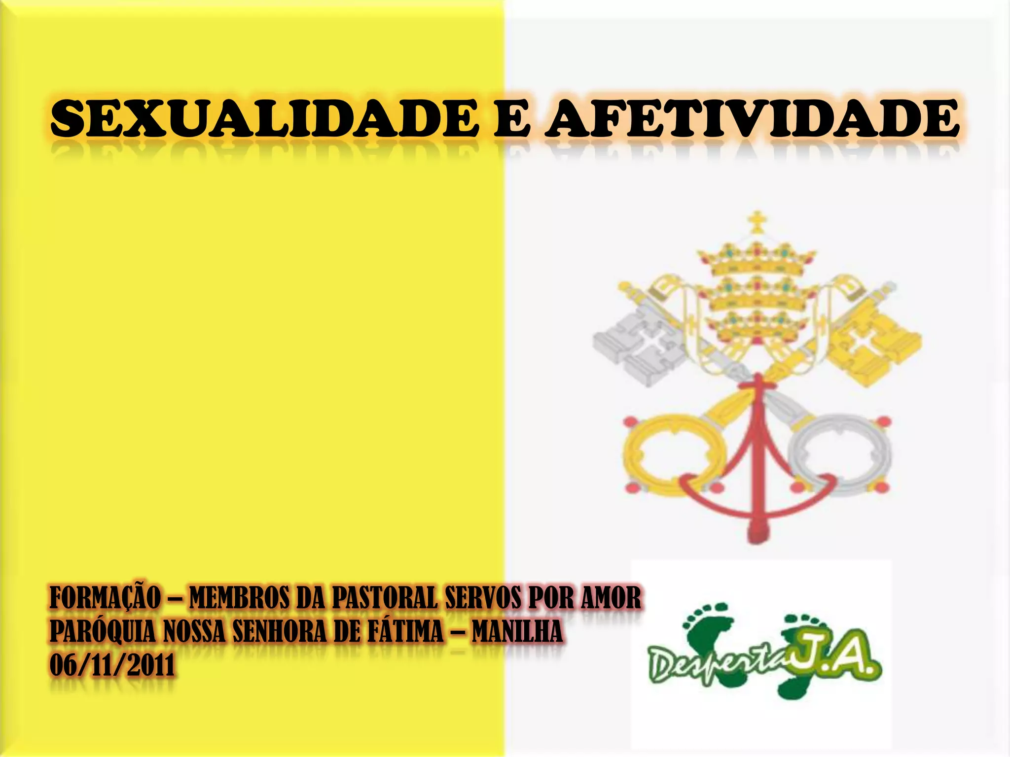Este documento discute a sexualidade humana e afetividade de uma perspectiva católica. Ele define termos-chave e discute a vocação do homem e mulher à sexualidade e castidade, o amor entre os esposos, métodos naturais de planejamento familiar e ofensas à dignidade do matrimônio.
