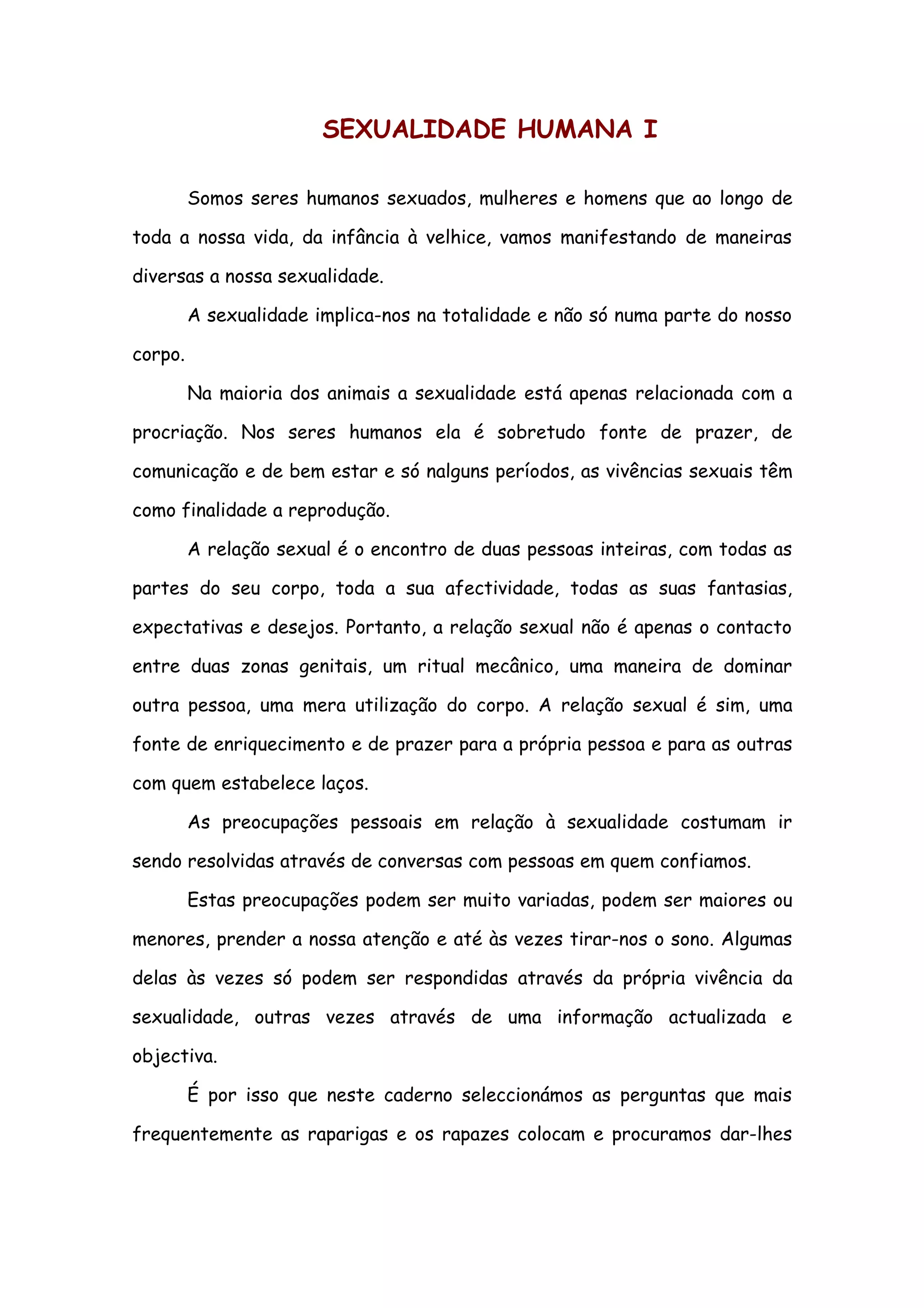 Este documento discute a sexualidade humana. Aborda tópicos como: