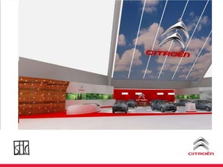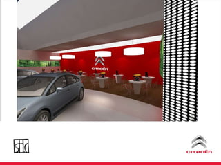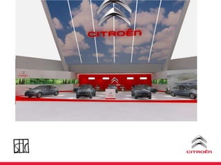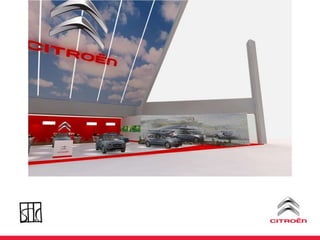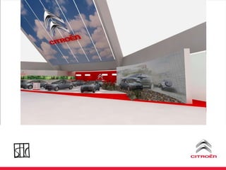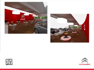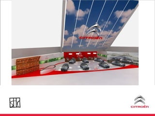 O documento discute uma estratégia de lançamento de um novo modelo de carro da Citroën no Brasil, incluindo ações de marketing direto, eventos e uma plataforma online para integrar e incentivar a equipe de vendas.