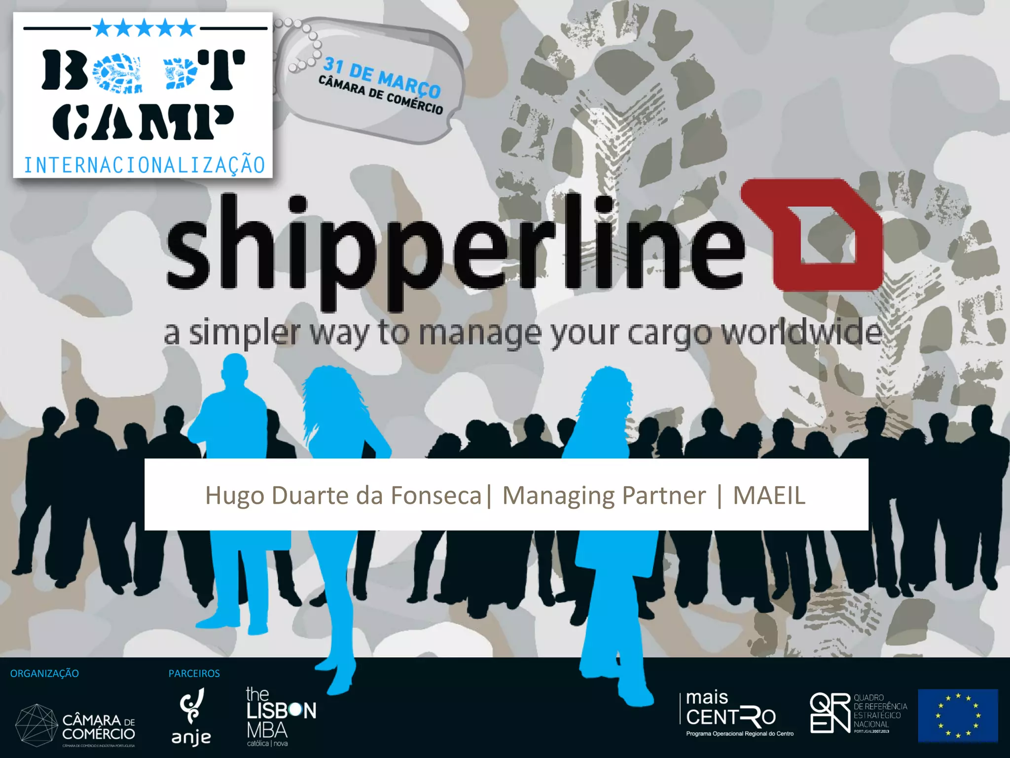 O documento descreve uma solução automatizada para gestão de exportações, oferecendo fluxos de trabalho padronizados, análises de dados históricos e resposta proativa a problemas. A solução visa o mercado global de transporte marítimo de 208 milhões de TEUs ao ano, oferecendo um modelo de pagamento por uso. Dois estudos de caso demonstram como a solução pode gerar economias significativas para grandes exportadores.