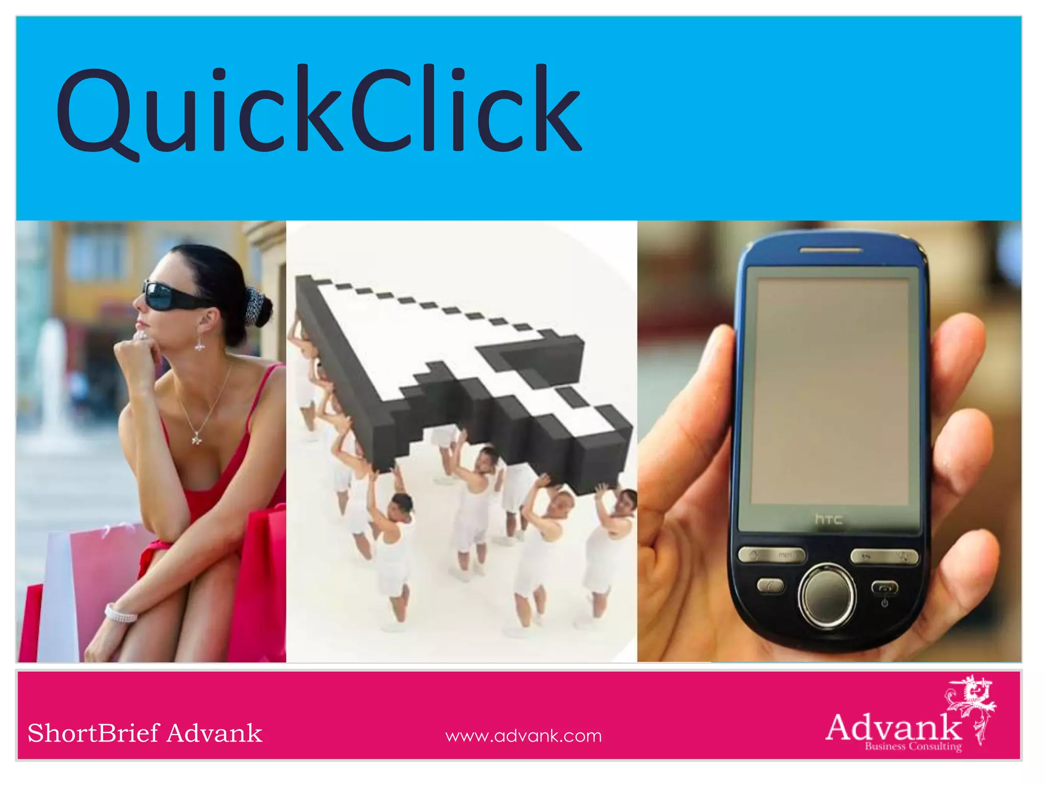 O documento discute a tendência de "QuickClick" no varejo, focando na crescente demanda por conveniência e eficiência nas compras. Ele destaca exemplos como o McDonald's e E.Leclerc e discute como as empresas podem melhorar a experiência de compra dos clientes tornando-a mais rápida e prática.
