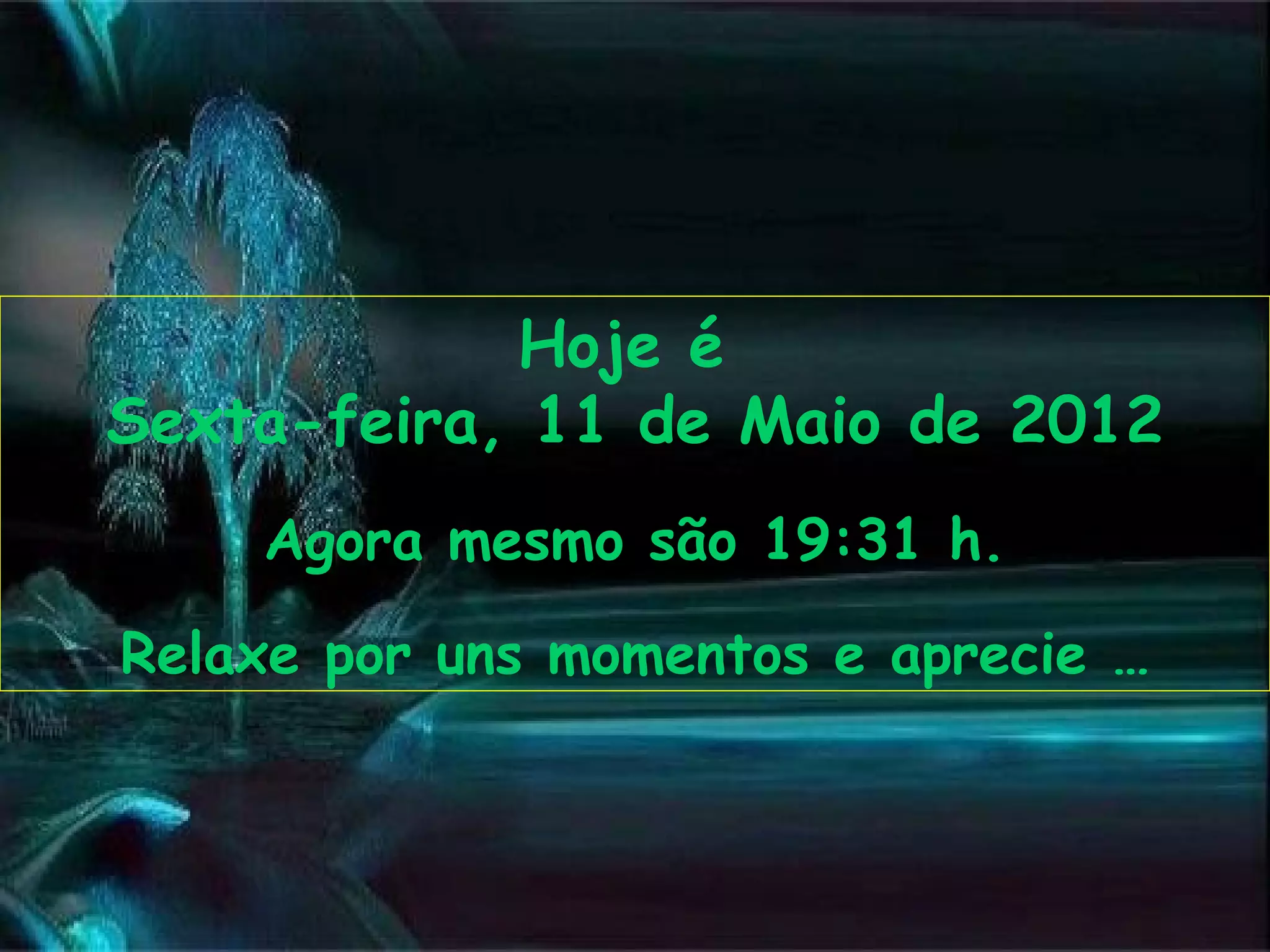 O documento fornece detalhes sobre a data e hora atuais, encoraja o leitor a relaxar e apreciar o momento presente. Ele pergunta retoricamente se tudo existe por acaso e sugere acreditar em Deus, fazer o bem e ser feliz, desejando uma proveitosa semana de paz.