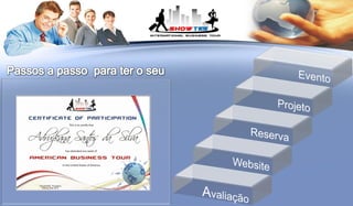O documento fornece informações sobre os serviços de turismo de negócios oferecidos pela Showtes para estrangeiros que visitam os Estados Unidos, incluindo agendas personalizadas, visitas a empresas e instituições, cursos e certificados, redes de contatos, entretenimento e lazer. A empresa está localizada em Atlanta e oferece pacotes individuais e para grupos focados em capacitação profissional, experiências culturais e oportunidades de networking.