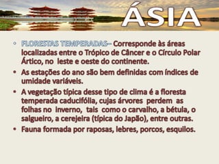 Clima e Vegetaçãodo Continente Asiático 9º ANO Apresentação disponível no meu blog: www.geodaraquel.blogspot.com Profa. Raquel P. R. de Avila Fonte: www.geocontexto.blogspot.com Prof. João F. Tojal