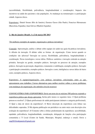 1) O documento convoca para seminários sobre inovação em atenção primária no Rio de Janeiro em março de 2013.