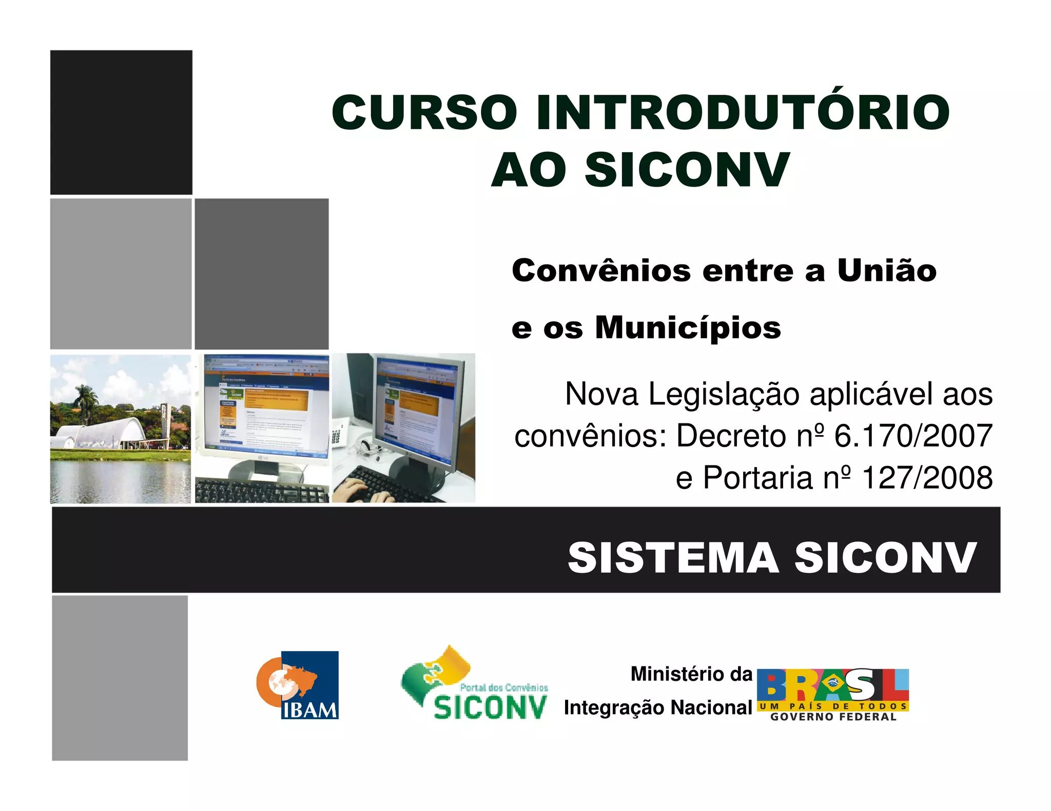 O documento discute a nova regulamentação das transferências voluntárias entre a União e os municípios. Ele apresenta conceitos básicos como convênio, contrato de repasse e Sistema de Gestão de Convênios (SICONV). Também descreve os principais aspectos da nova legislação aplicável como o Decreto no 6.170/2007 e a Portaria no 127/2008.