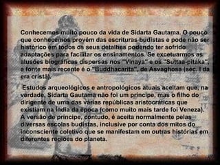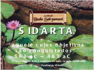 Sidarta Gautama, nascido em 563 a.C. na Índia, alcançou a iluminação aos 35 anos sob a Árvore da Sabedoria e tornou-se Buda. Após experimentar a vida de luxo de um príncipe e a ascetismo extremo, ele encontrou o Caminho do Meio, buscando compreender a causa do sofrimento humano através da meditação.