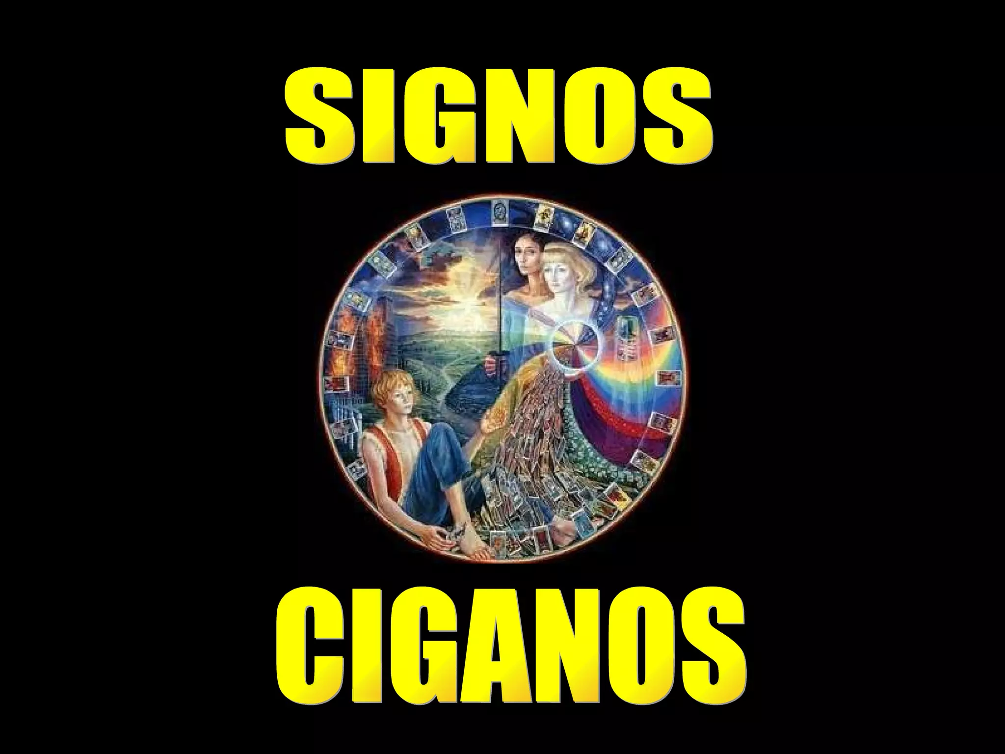 O documento descreve os signos cigano, correspondentes aos signos do zodíaco ocidental. Cada signo é representado por um símbolo e suas características associadas. Os signos vão de Punhal (Áries) a Capela (Peixes), passando por Coroa, Candeias, Roda, Estrela, Sino, Moeda, Adaga, Machado, Ferradura e Taça.