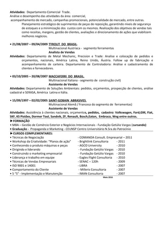 Silviane Izar possui experiência em vendas, pós-vendas e suporte comercial em multinacionais dos setores de peças e ferramentas. Fala inglês intermediário e espanhol básico, com experiência em sistemas SAP. Atualmente cursa MBA em Gestão de Comércio Exterior.